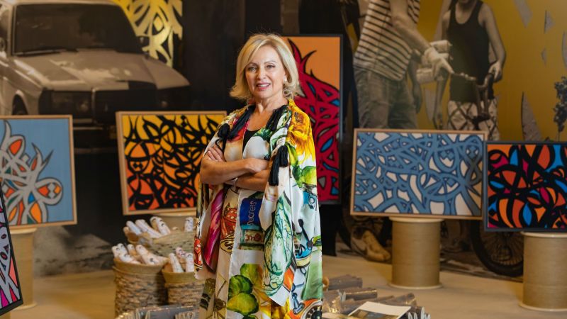 The enterprise was also asked by Facebook to launch their participation at Dubai Design Week in November 2018 through an entire week of workshop activations, which focused on the history of tatreez and 81 Designs’ goal of both modernizing and preserving the traditional craft. And recently, in November of this year, the enterprise presented a new project called The Journey at Abu Dhabi Art. In collaboration with eL Seed, the artist painted seven murals inside Ain al-Hilweh, one of the largest and most crowded Palestinian refugee camps in Lebanon, along with the refugee women that 81 Designs employ, and their children.