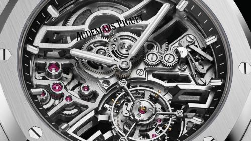 To mark the 50th anniversary of the Royal Oak, luxury Swiss watchmaker Audemars Piguet is debuting its first Royal Oak Selfwinding Flying Tourbillon in an openworked dial configuration.